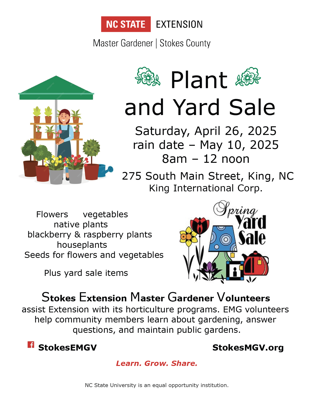 See who we are and what we do. Our Calendar shows not only our meetings, programs and events, it also covers the Stokes County Cooperative Extension related dates. Plus, we have included many of the local gardening events and classes. The Stokes Extension Master Gardener Volunteer classes goes from January – April 2025!